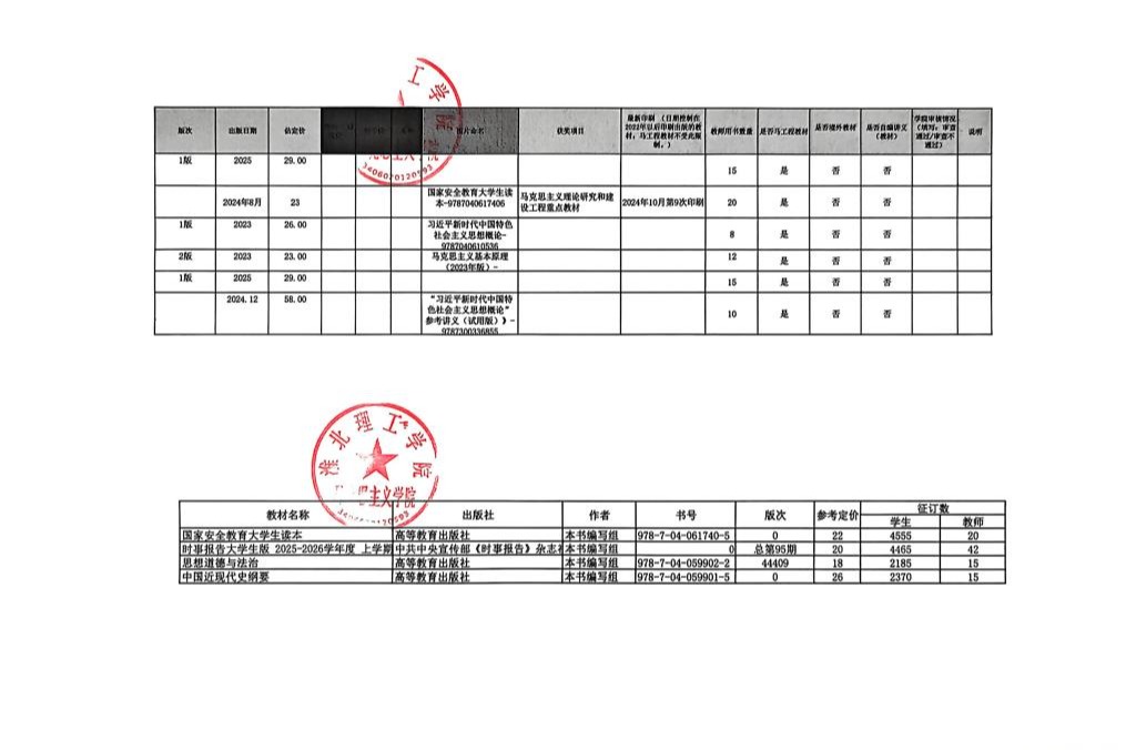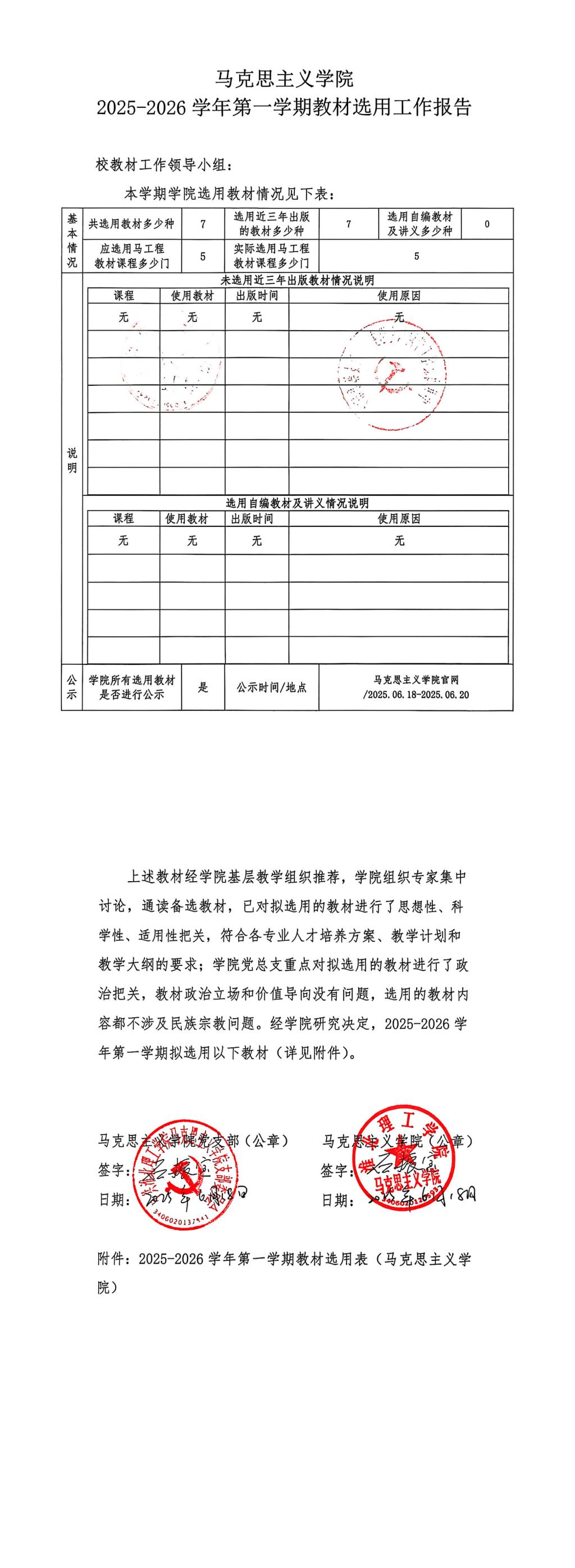 太阳成集团122ccvip2025-2026学年第一学期教材选用情况公示