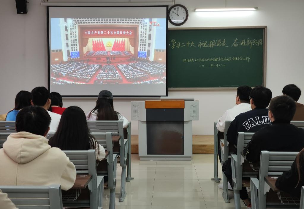 10月16日上午10时,万众瞩目的中国共产党第二十次全国代表大会在北京隆重召开,习近平总书记代表十九届中央委员会向大会作报告,为深入学习宣传贯彻党的二十大精神,太阳成集团122ccvip和经济与管理公司党总支第一时间组织师生党员干部在第一教学楼214、215教室集中观看大会现场直播。