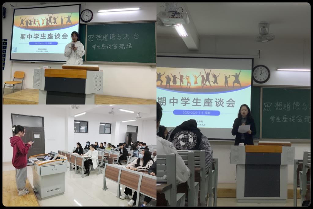 此次座谈会主要围绕思政理论课教学条件、课堂教学、教学管理等方面进行讨论,到会员工代表各抒己见,大部分同学对目前开设的思想政治理论课表示满意,认为大多数教师教学态度认真负责,教学方式多样化,教学内容生动深刻,富有吸引力和感染力。同学们也对思想政治理论课提出了一些宝贵意见和建议。