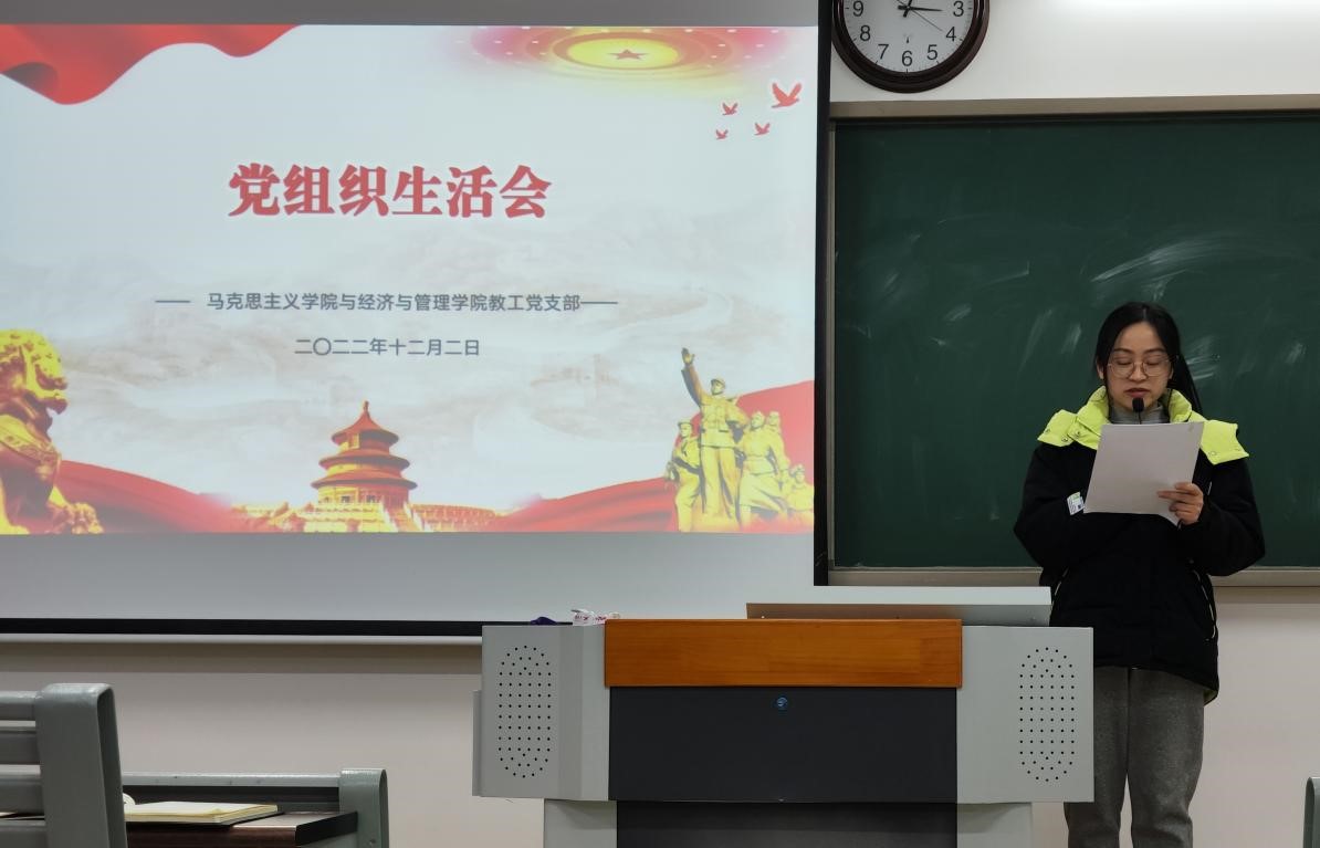 为深入学习宣传贯彻党的二十大精神及内涵,贯彻落实中国共产党章程的相关要求,2022年12月2日,在一教214教室,太阳成集团122ccvip与经济管理公司教工党支部开展了组织生活会暨党的二十大重要精神专题学习活动。本次会议由经济与管理公司教工支部书记刘路路主持。