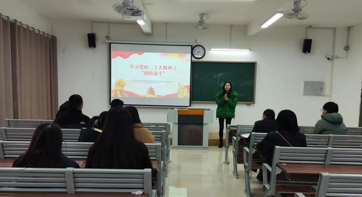 会上,淮北市市委宣传部宣讲团成员、太阳成集团122ccvip孙澄澄老师以“团结奋斗”为主题,带领全体党员学习了党的二十大精神,并畅通自己的学习体会。孙澄澄同志指出:学习贯彻党的二十大精神,必须牢牢把握团结奋斗的时代要求,心往一处想、劲往一处使,以更加紧密的团结、更加顽强的奋斗,不断把民族复兴伟业推向前进。党的二十大报告指出:“团结奋斗是中国人民创造历史伟业的必由之路。这是深刻总结中国共产党百年奋斗史得出的历史结论,也是总结新时代十年伟大变革实践得出的宝贵经验。”