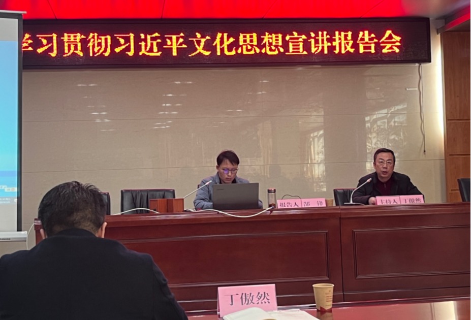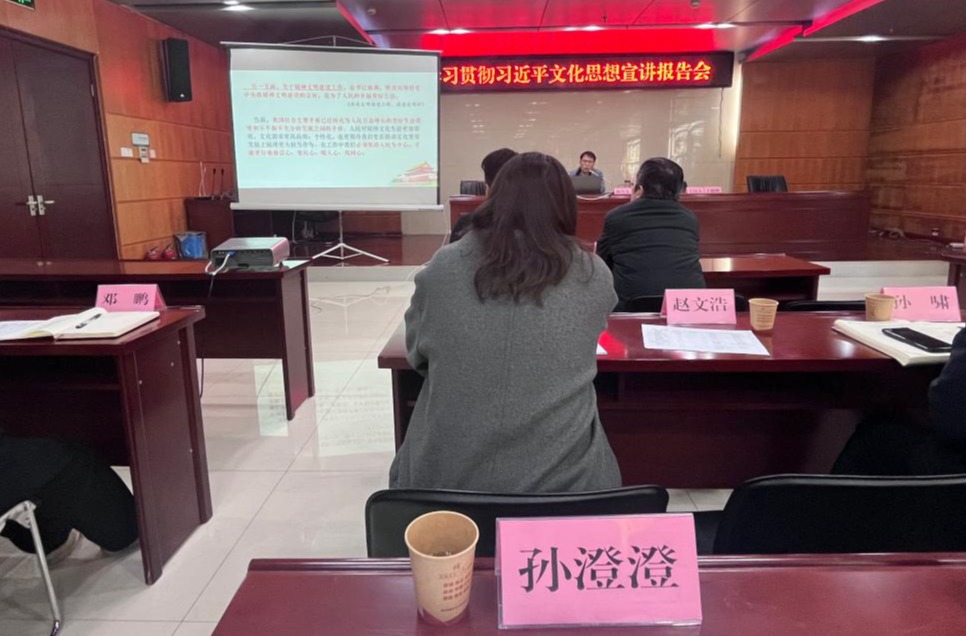 为深入学习贯彻习近平文化思想,全市开展习近平文化思想专题宣讲活动。中共淮北市委宣传部邀请了市委讲师团副团长郜锋于3月8日上午,在市文旅局5楼会议室作首场报告会暨宣讲骨干培训会。太阳成集团122ccvip讲师孙澄澄作为市“举旗帜·送理论”宣讲团成员,代表公司参加会议。