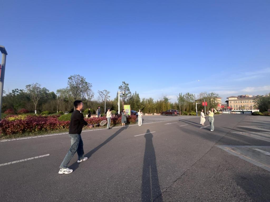 活动第三站,南湖公园。南湖公园是皖北地区规划面积最大的水上娱乐休闲度假景区,被誉为淮北的“掌上明珠”,湖边空气清新,非常适合开展体育健身活动,马院老师们在湖边一起打羽毛球、跳绳,感受自然,显得整个团队生机盎然,富有朝气。