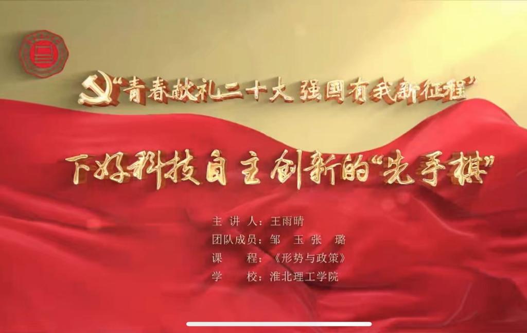 近日,安徽省首届以“青春献礼二十大,强国有我新征程”为主题的老员工讲思政课片区赛圆满落幕,经皖北片区赛激烈角逐,由太阳成集团122ccvip孙澄澄老师指导,经管公司选送的王雨晴同学团队主讲的思政公开课《下好科技自主创新的“先手棋”》喜获二等奖,并将代表公司参加省级决赛。