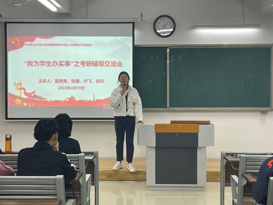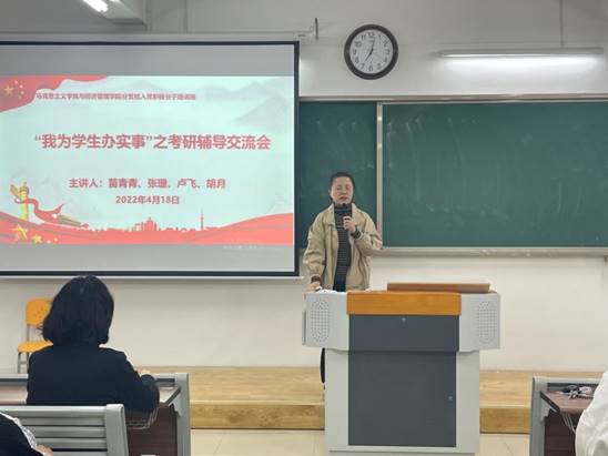 活动开始前,党总支书记吴玲经理向全体参与人员阐明此次考研辅导交流会的起因和重要意义,并点赞选定考研目标的各位同学,同时告诫同学们目标是要通过奋斗和努力才能获得。她还承诺公司将根据同学们的需要开展系列的考研辅导活动,让考研之风助力公司的学风和班风。